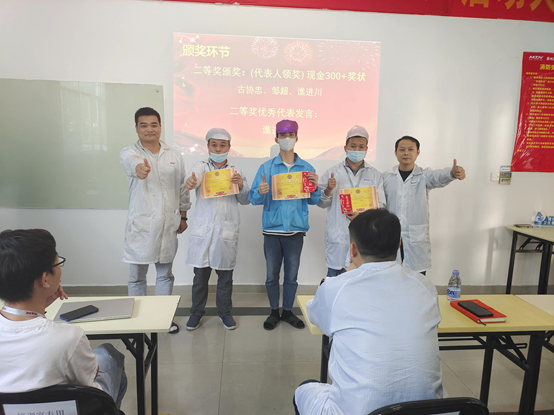4月份,華南工廠共收到168項提案,經總經辦評審小組審核,最終評出一等獎1名,二等獎3名,三等獎6名,華南工廠領導為優(yōu)秀提案改善項目及人員頒發(fā)榮譽證書、獎金并合影留念。