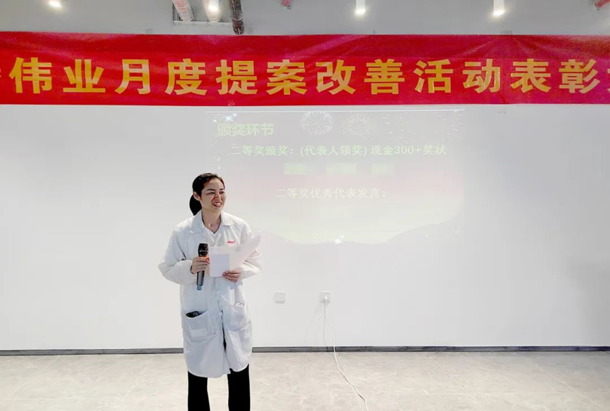 我們還邀請了獲獎員工上臺演講。他們分享了一些關于提案改善實踐經驗,為其他員工們提供了寶貴的啟示和指導,激發了更多的創新思維。