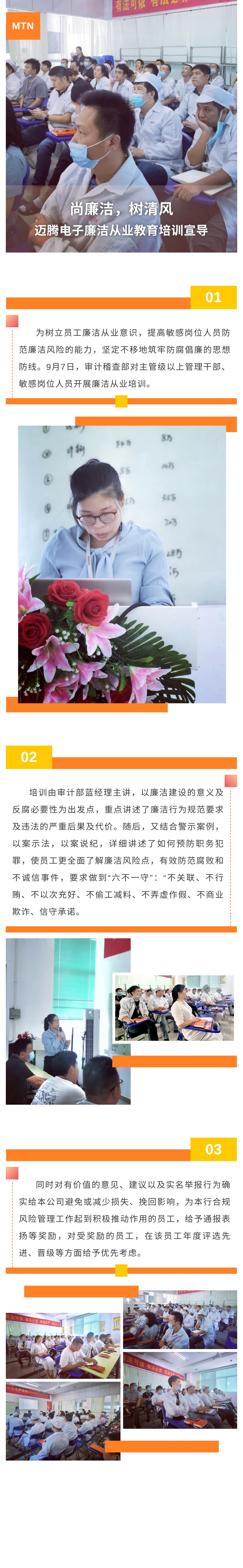 尚廉潔,樹清風|邁騰電子員工從業廉潔制度培訓順利召開!
