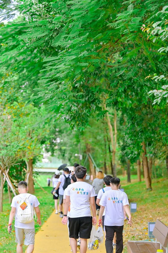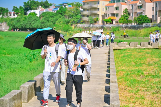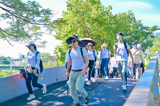 徒步初始,大家腳步輕盈,依然保持著良好的狀態。面對炎熱的天氣我們全員無一人退縮。有的幫隊友打傘,有的幫助小伙伴背包減負,大家充分發揮團結互助精神,相互鼓勵。